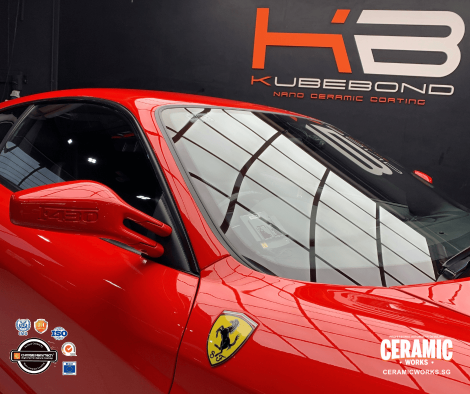 Take your Ferrari to the next level with KubeBond ceramic coating at Ceramic Works. A red Ferrari 488 isn’t just driven—it’s admired. A symbol of success, passion, and precision, every curve deserves nothing less than perfection.