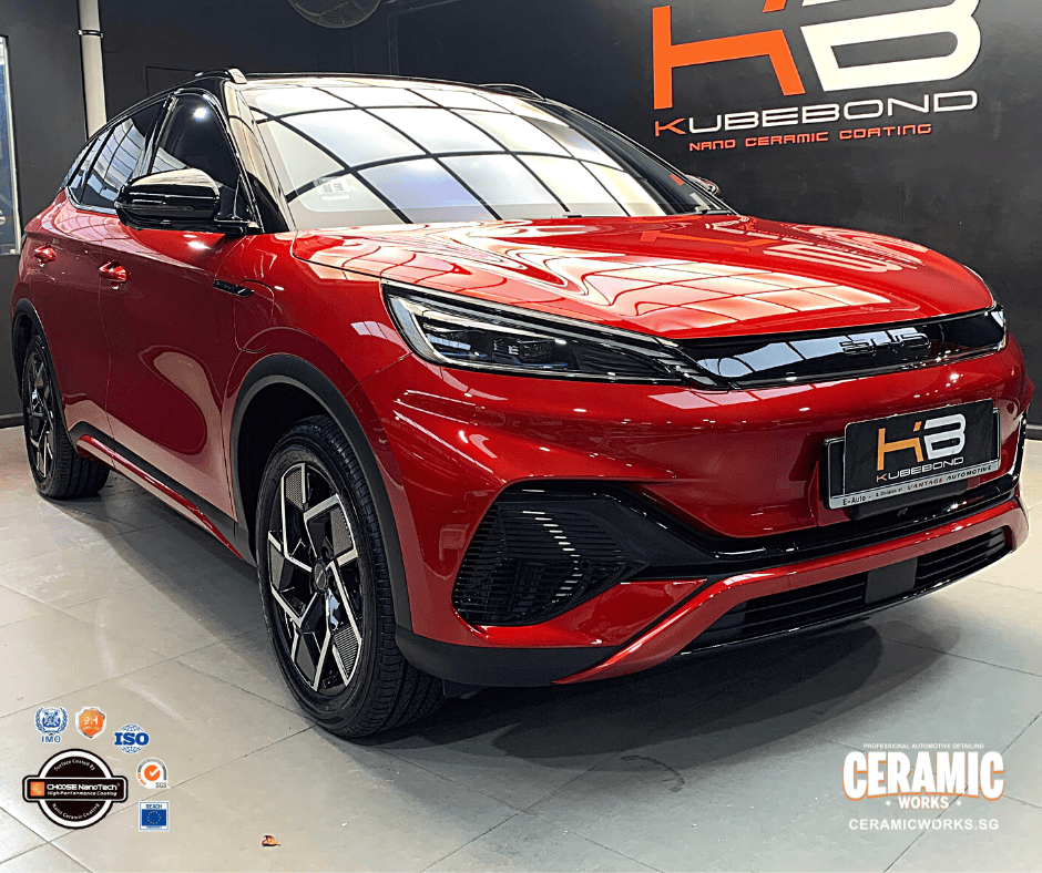 Get ready for the ultimate shine! Our super cool KubeBond ceramic coating is all set to make your car look amazing, taking it to a whole new level. Just check out these two awesome friends who brought in their BYD Atto 3 and left smiling from ear to ear!