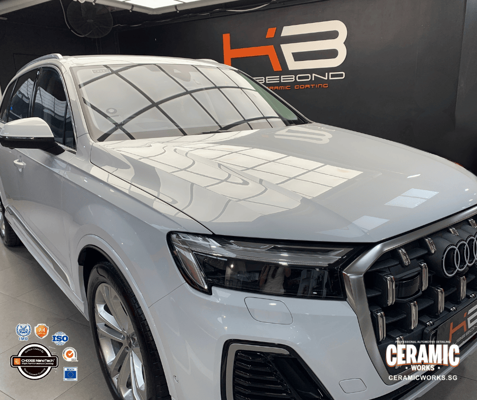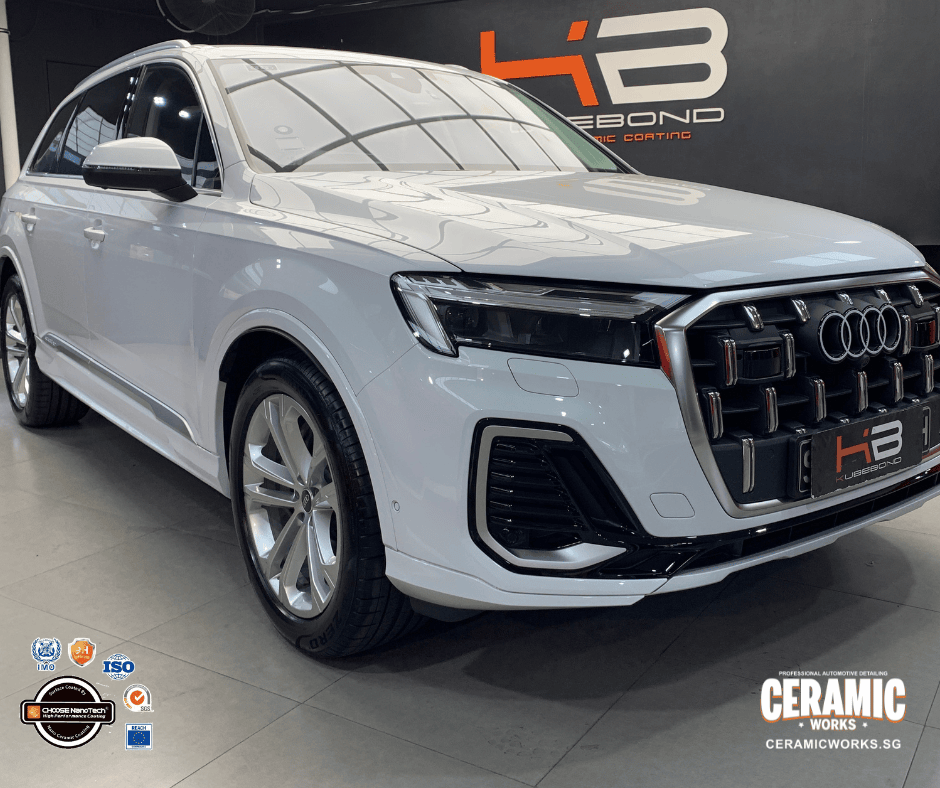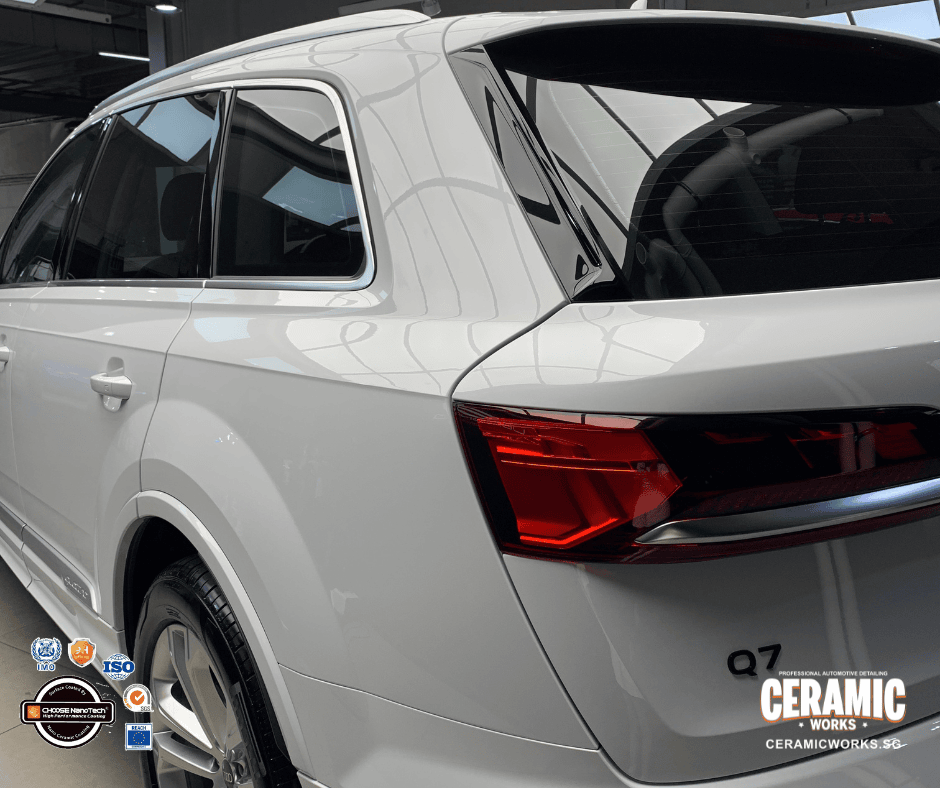 Just look at this Audi Q7 — pure perfection on wheels. Our advanced coating not only enhances gloss; it forms a powerful shield against rain, harsh sun, dirt, and grime, keeping your car cleaner, glossier, and fresher for years with minimal maintenance.