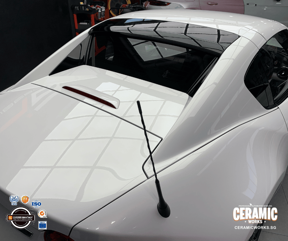 Give your car the glow it deserves! This sleek white Mazda MX-5 has been transformed with KubeBond Nano Ceramic Coating — a revolutionary protection that bonds deep into the paint, making it gleam with unmatched gloss and depth.