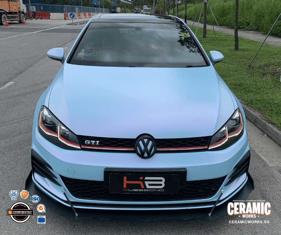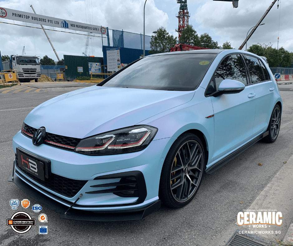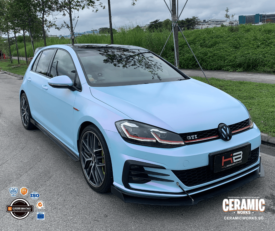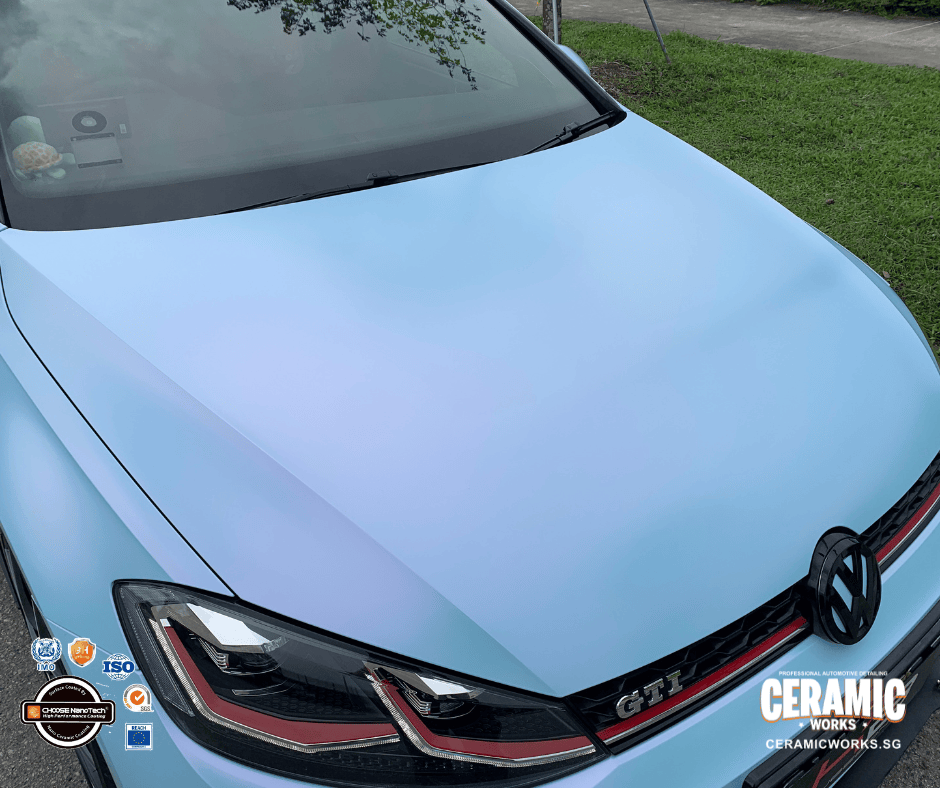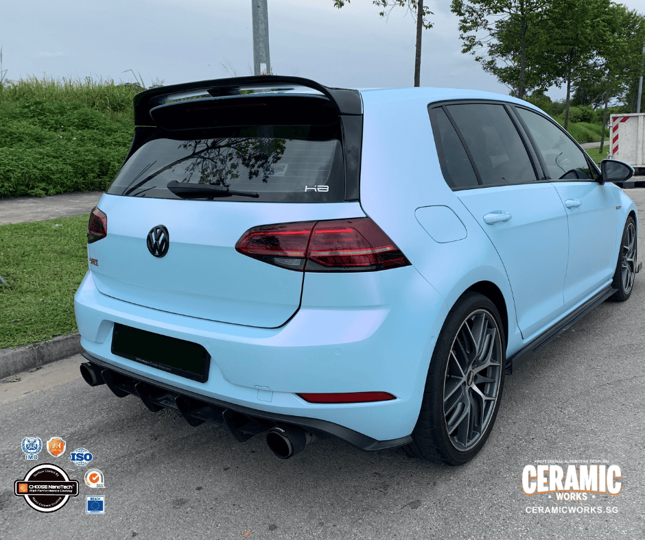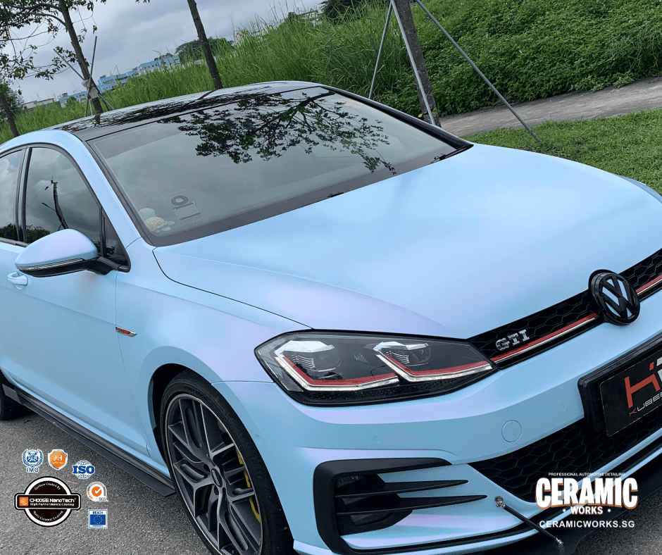 From glossy grey… to a head-turning matte pink-blue masterpiece. This Volkswagen Golf just underwent a stunning transformation at Ceramic Works, proving that a vinyl wrap can completely redefine your car’s personality. With our premium-grade vinyl films, your ride doesn’t just change color — it gains a sleek matte finish and a bold new presence that demands attention wherever it goes.
