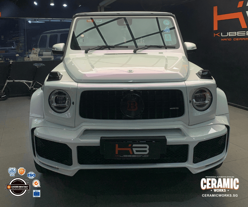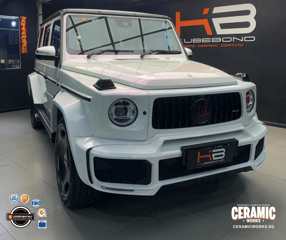 This G-Class received 4 layers of KubeBond ION Ceramic Coating plus full interior protection—delivering a deeper gloss, richer reflections, and that unmistakable mirror-like shine. With strong hydrophobic protection, dirt and water slide right off, making maintenance easier than ever. It’s also shielded against UV rays and light scratches, while the interior stays protected from fading and stains—keeping that brand-new feel inside and out.