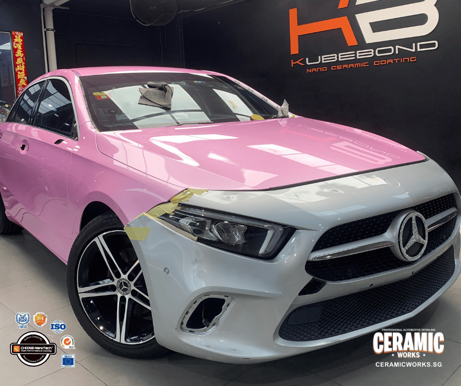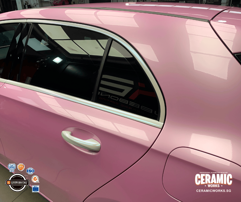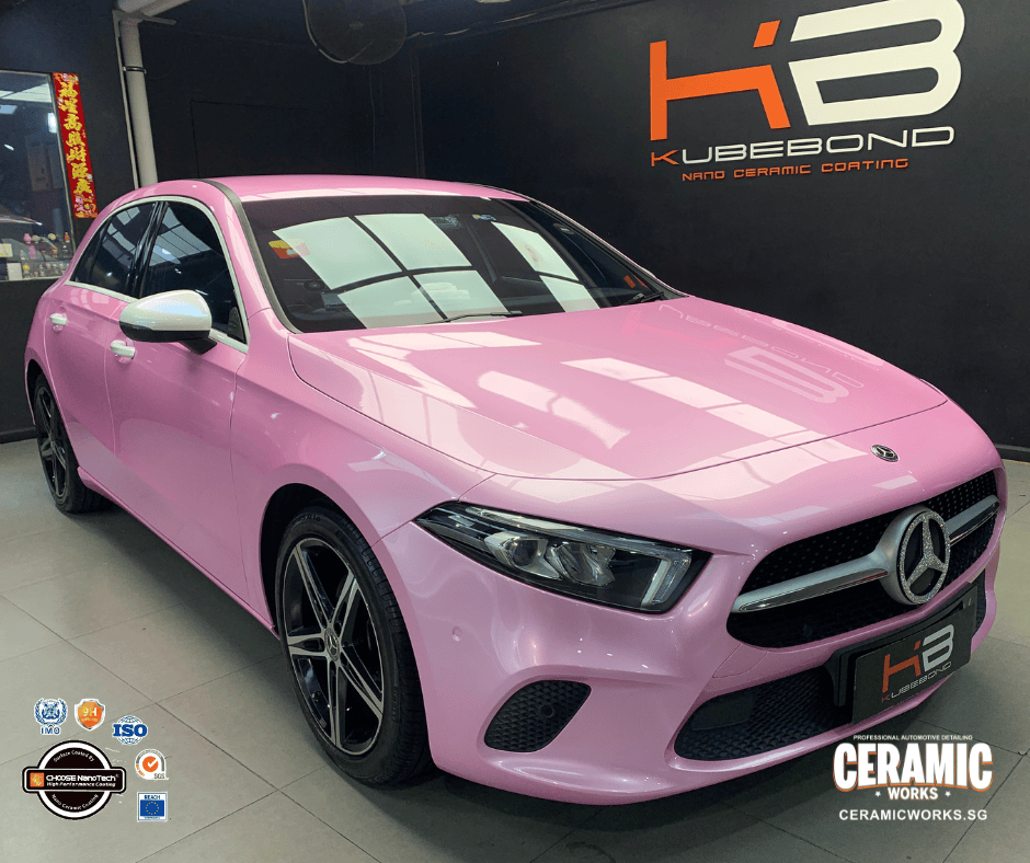 Another Mercedes A180 transformed — from Factory Silver to Macaron Taffy Pink. A soft tone with a sweet finish, turning this luxury hatch into a guaranteed head-turner everywhere it goes. Who says premium cars can’t be playful and fun?